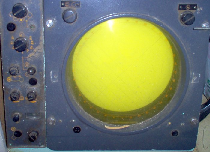 | Radar navale. Schermo, cono in gomma antiriflesso, rotore e pala. Tracce di ossidazione sullo chassis dello schermo e potenziometri bloccati ma dentro è in buono stato. I cavi di collegamento sono stati tranciati. La